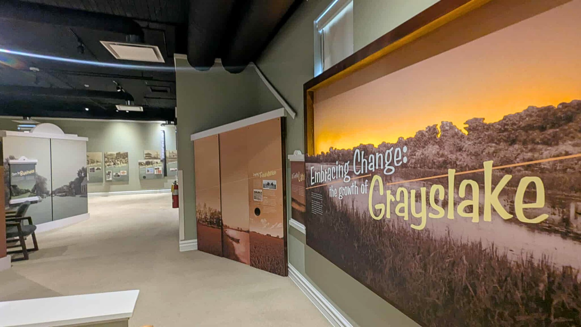 Embracing Change, the crown jewel of the museum, traces the origins and evolution of Grayslake through four themed sections. Visitors journey from the village’s agrarian roots and railroad beginnings, to its thriving early businesses, civic life, and enduring industries, before concluding with an interactive look at how the community has transformed over time—while some areas remain strikingly familiar. Rich with images, artifacts, and hands-on elements, the exhibit offers a vivid portrait of Grayslake’s past and present.